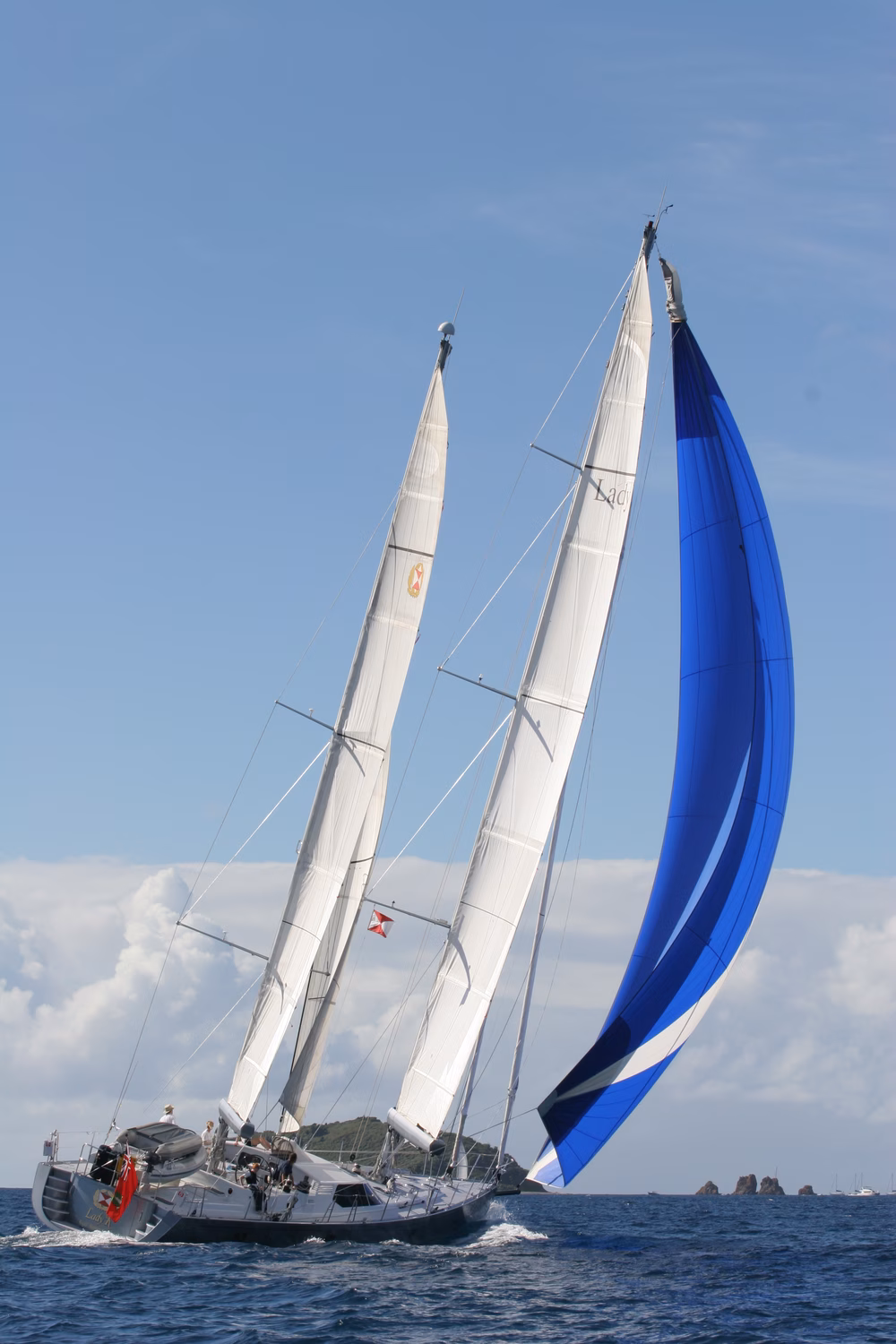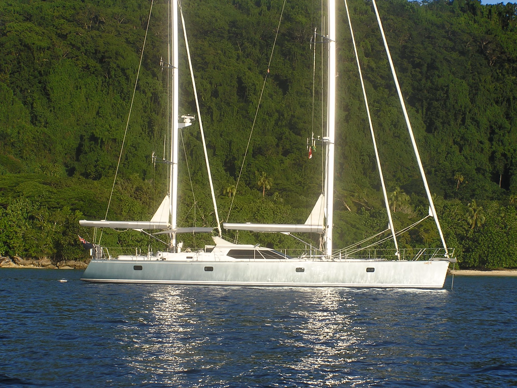 As a ketch, the sailing loads are less than a sloop, making her easier to sail. With eased sheets however she is very fast, reaching and running under numerous sail combinations, the variety of which allow for both added safety and ease of use. The swept spreader ketch rig means that LADY K does not need any backstays and can carry a square top main and mizzen sails. The current fathead sails are easy to reef into the furling boom systems, another feature that maximizes safety and ease of handling.